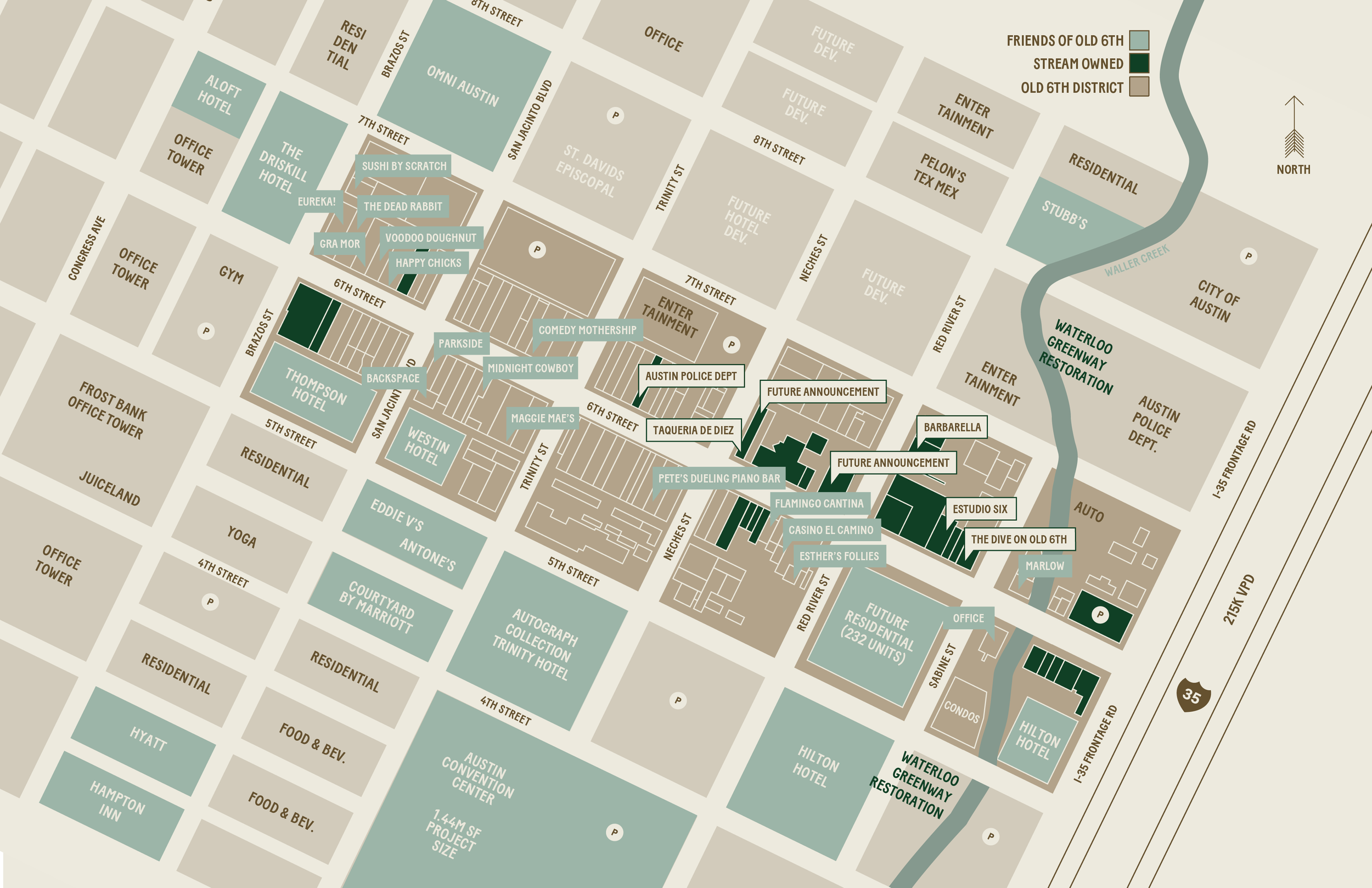 Old 6th Street represents Austin’s past, present, and future. This is why Stream Realty is managing the redevelopment of Old 6th with special care—to preserve 31 of its unique historic parcels (totaling 200,000 sq. ft.) and revitalize what is truly the core of Austin, not just in location, but in spirit and community.